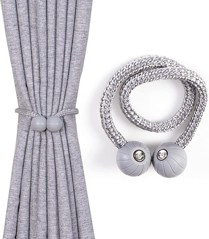 • AMPLIA APLICACIÓN: Adecuado para la mayoría de las cortinas, como cortinas opacas gruesas, cortinas de ducha o cortinas finas transparentes. Para cortinas delgadas, puede envolverlas dos veces o simplemente atarlas.