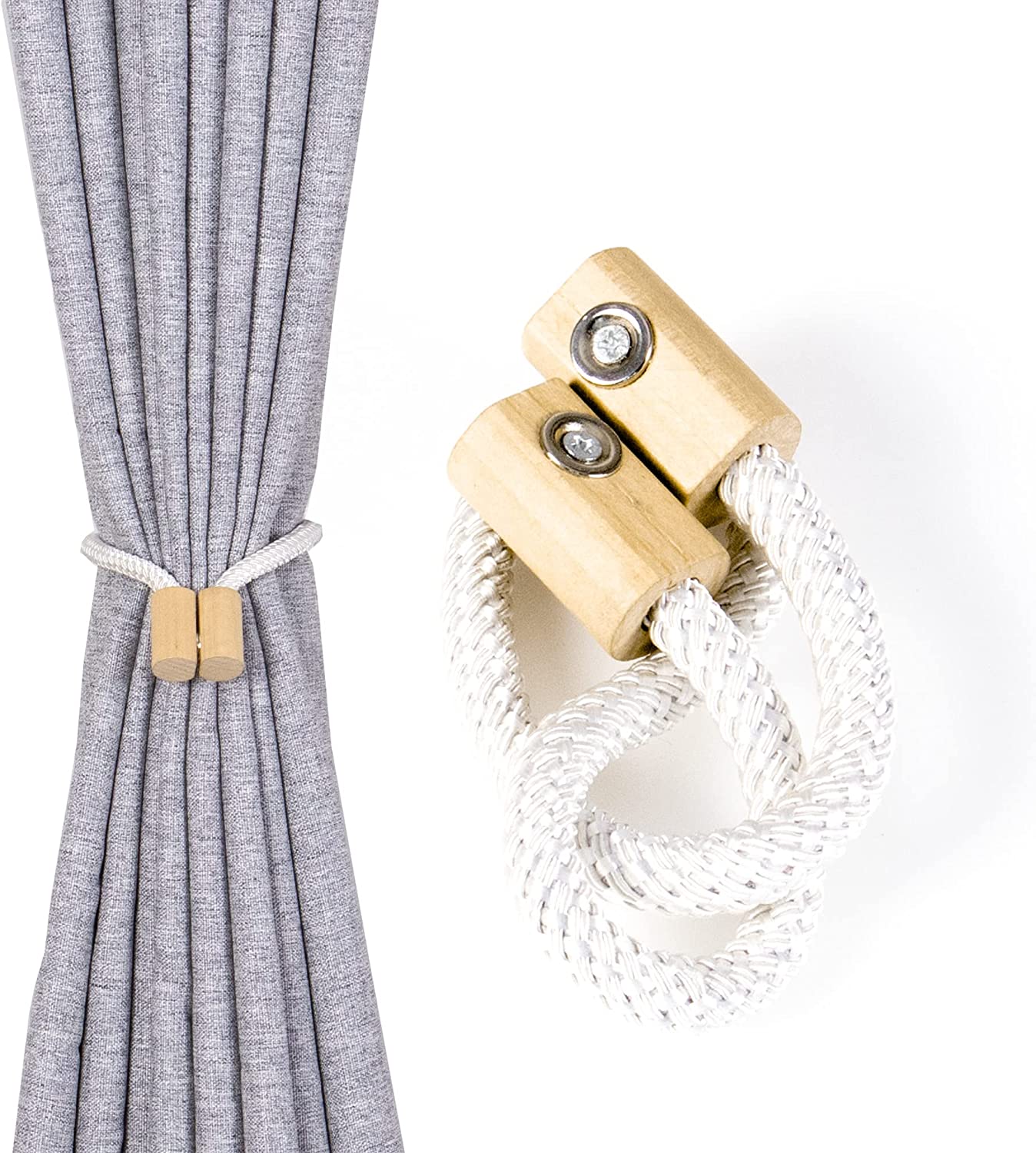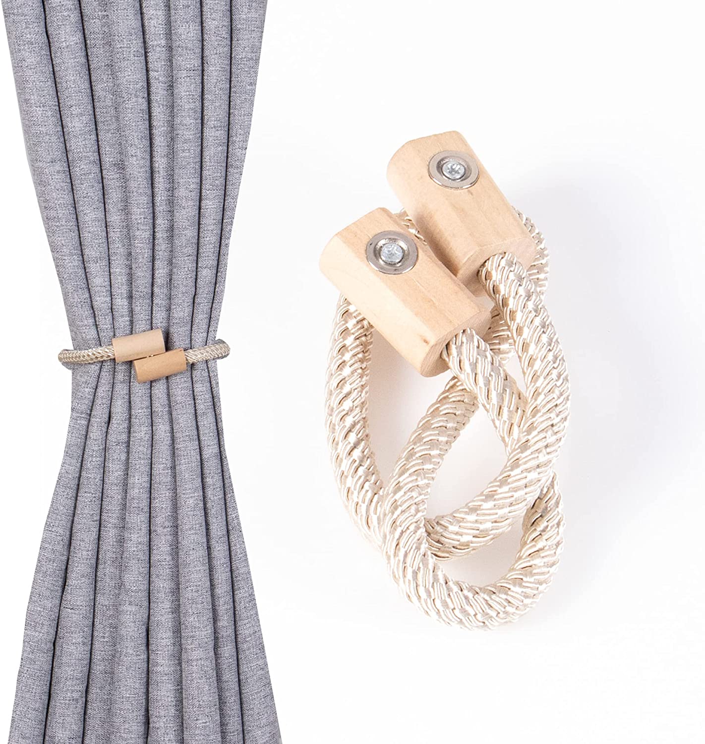 Abrazaderas Cortinas, Correas de Imán para Cortina, Hebillas Cuerda con Detalle de Madela de Gancho para la Decoración de Cortinas