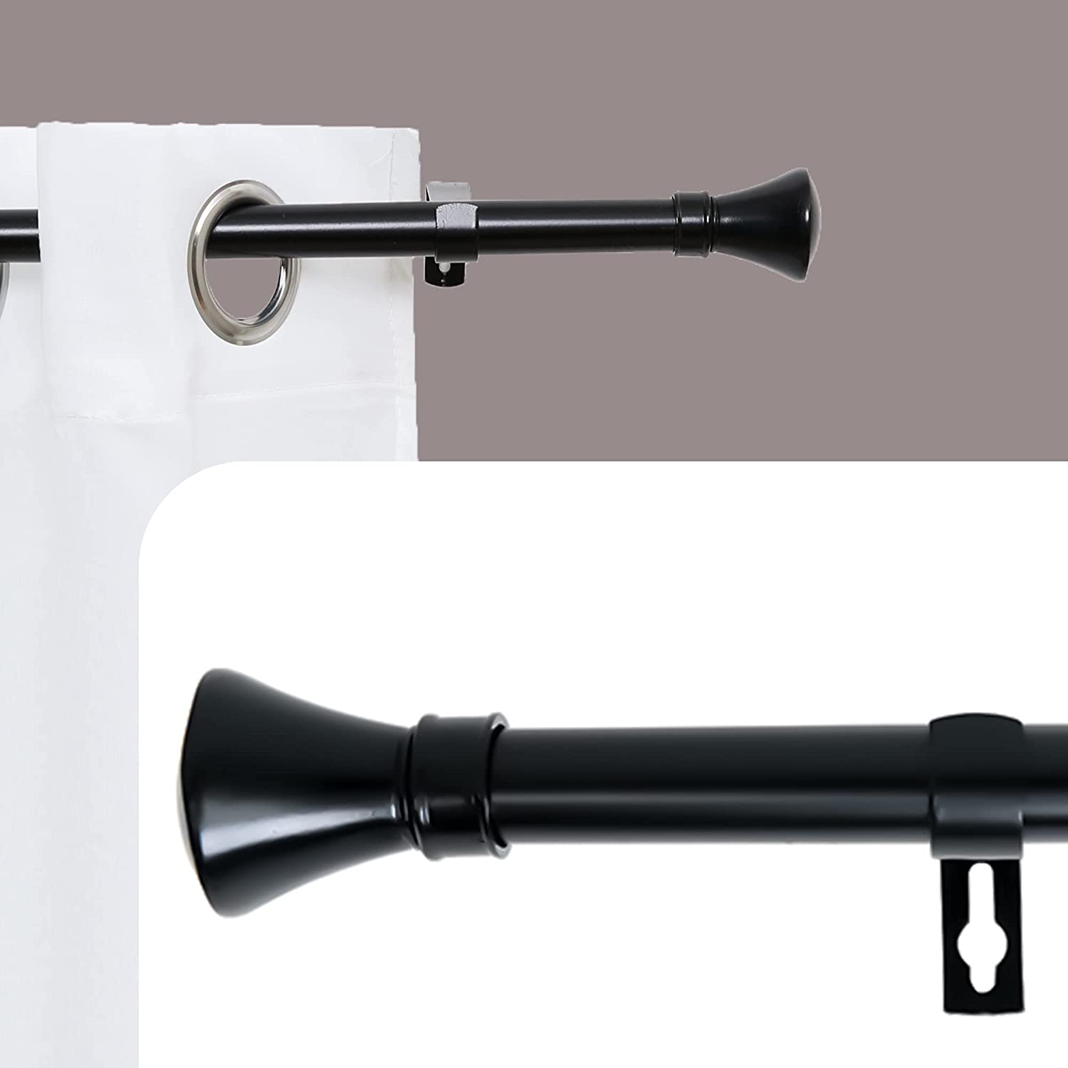 Barra Extensible para Cortina con terminales en Estilo de Rústico - Barra Cortina Decolativa incluiye Soportes y Anillos de Plásticos