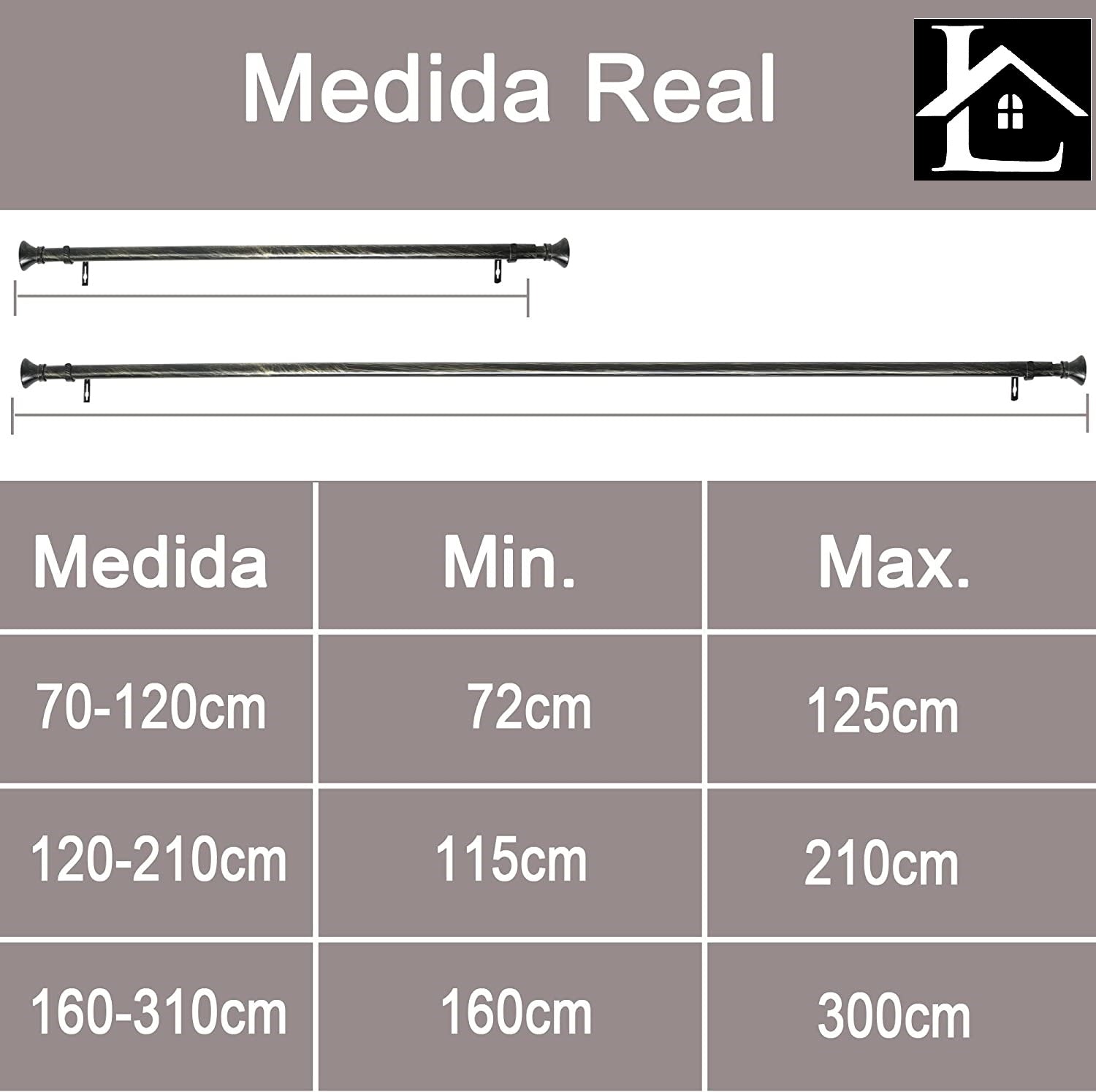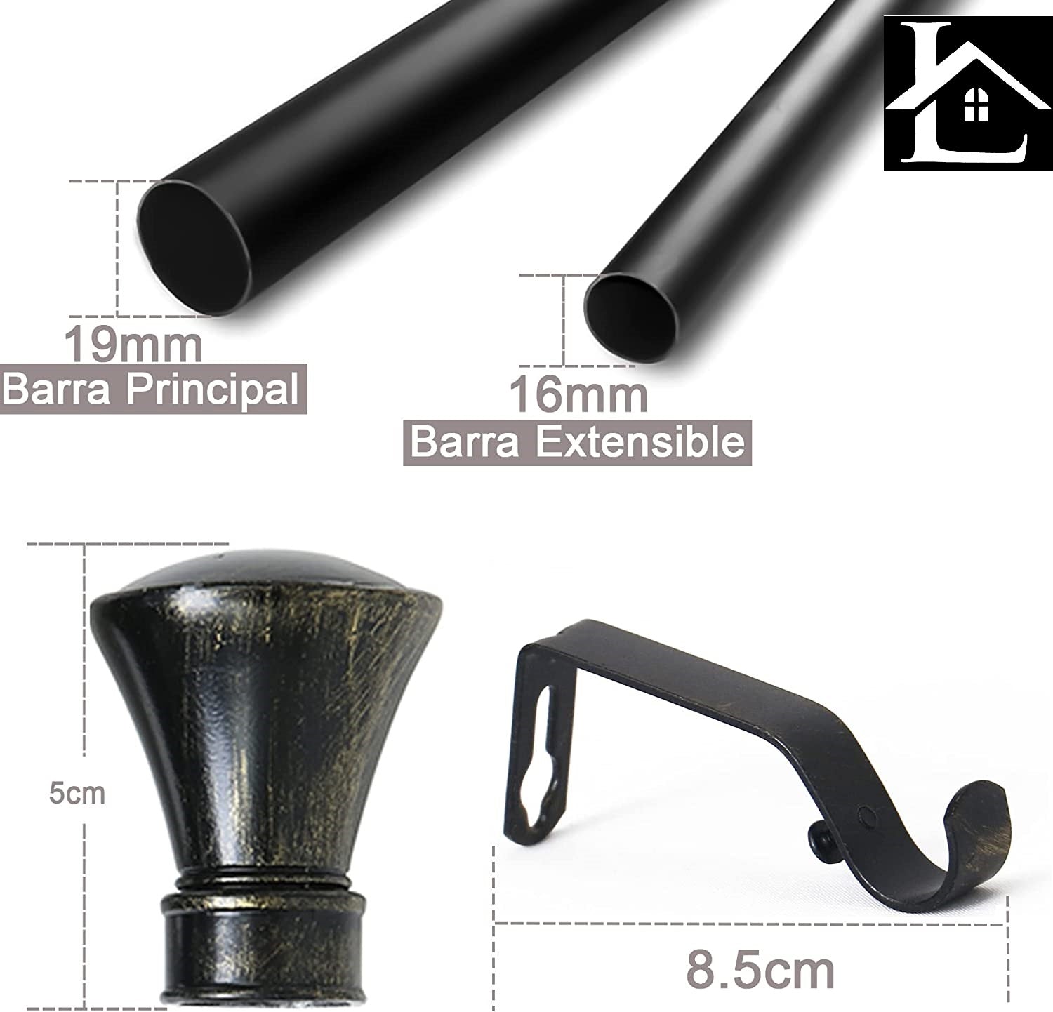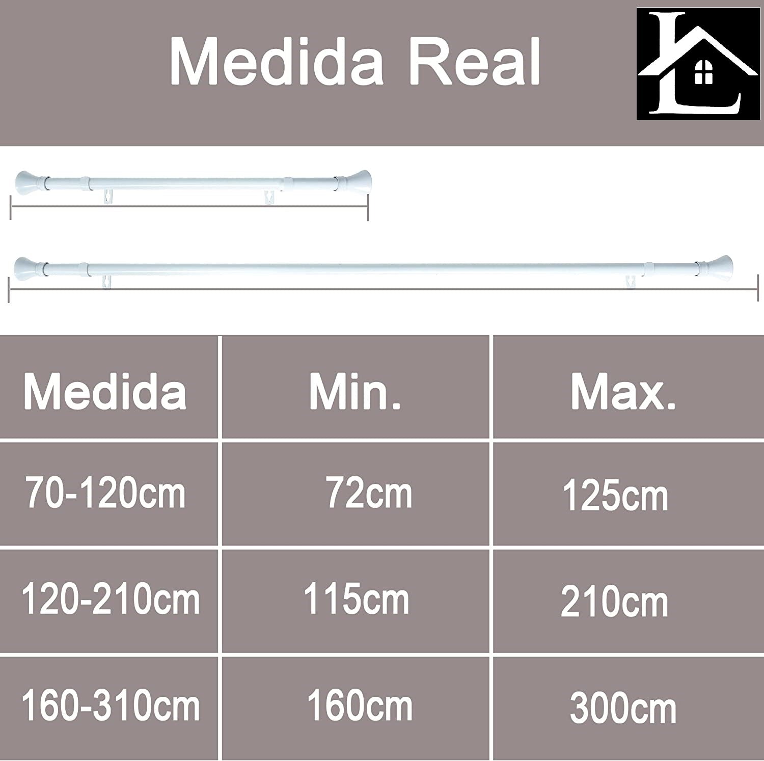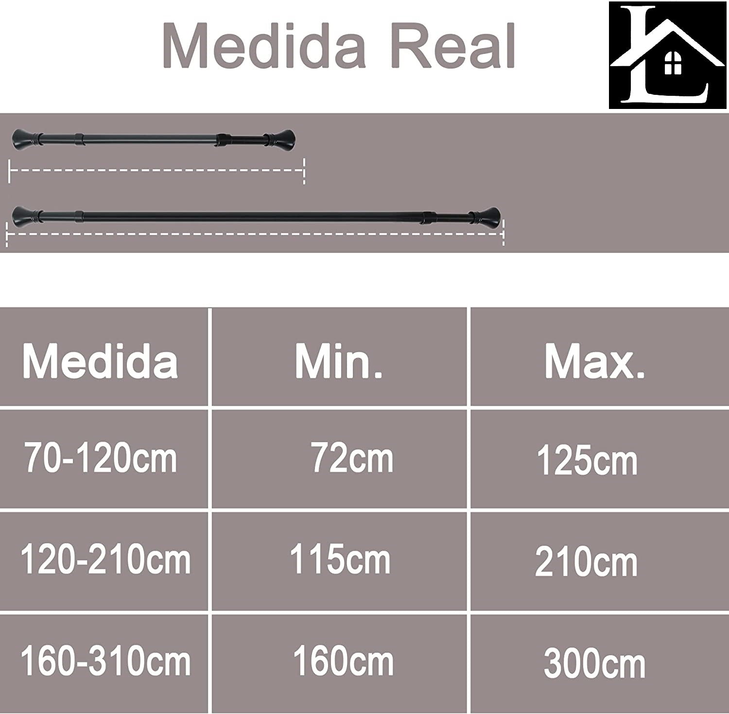 - TAMAÑO. Barra extensible , que se ajustan perfectamente a tus necesidades ya que nuestras barras se pueden extender y encogerse para adaptarse en el lugar perfecto del hogar.