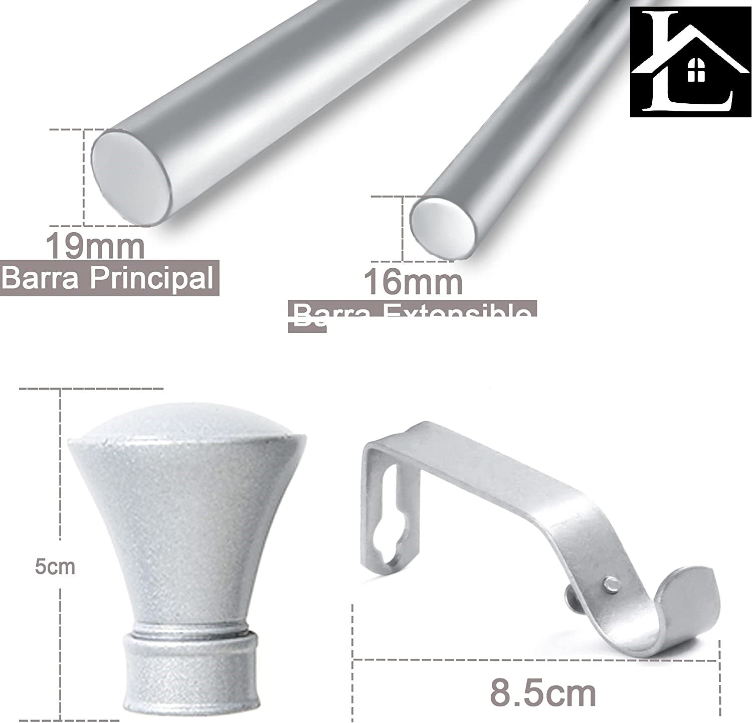 - SOPORTE. Con el diámetro de 16-19mm de la barra proporciona un soporte perfecto para telas pesadas