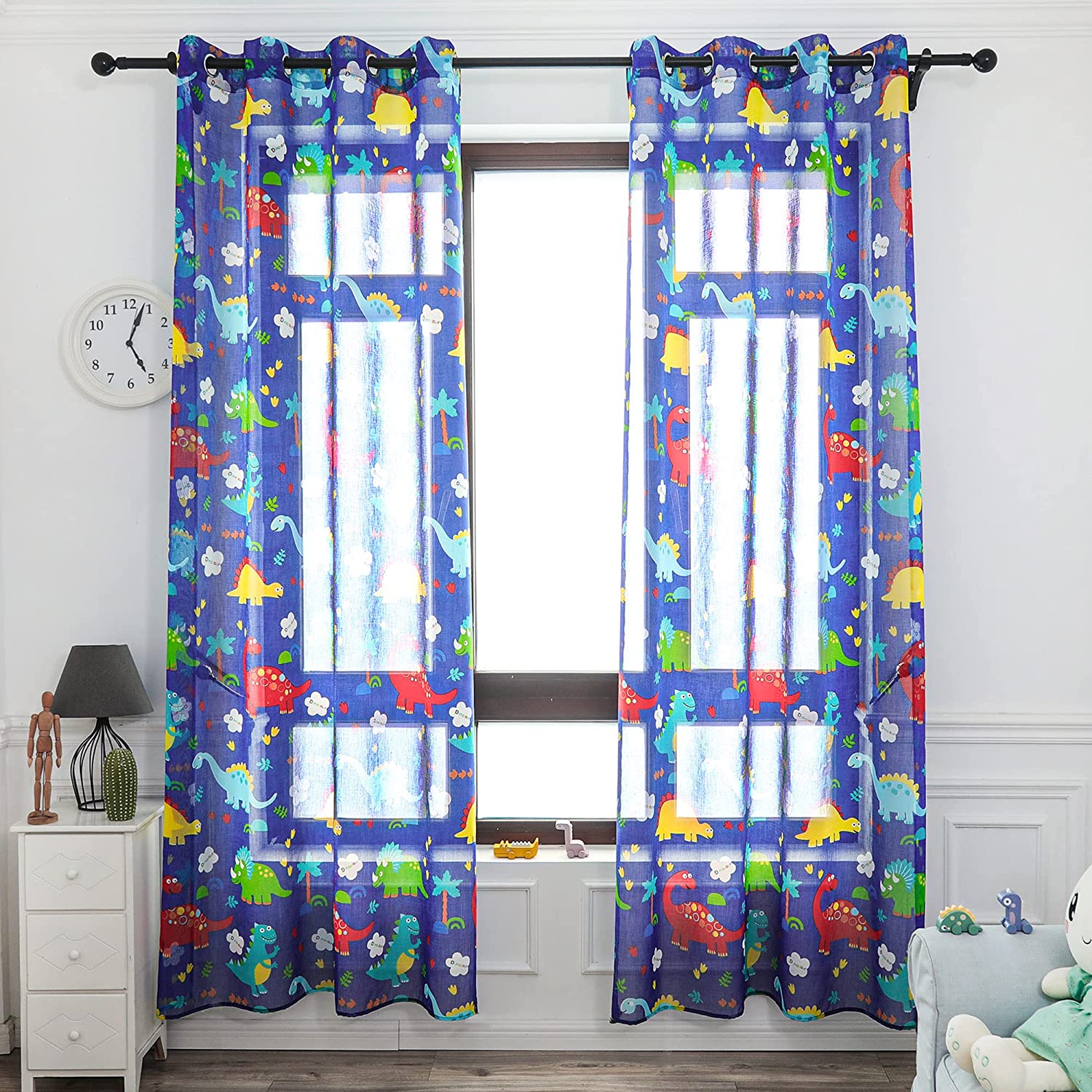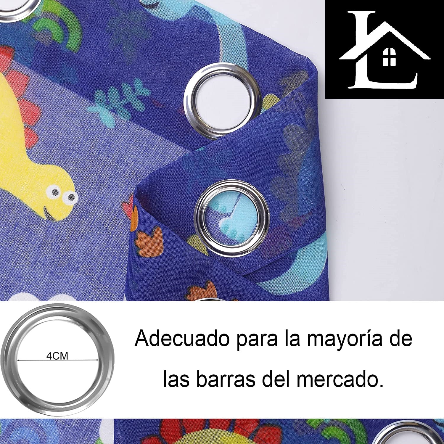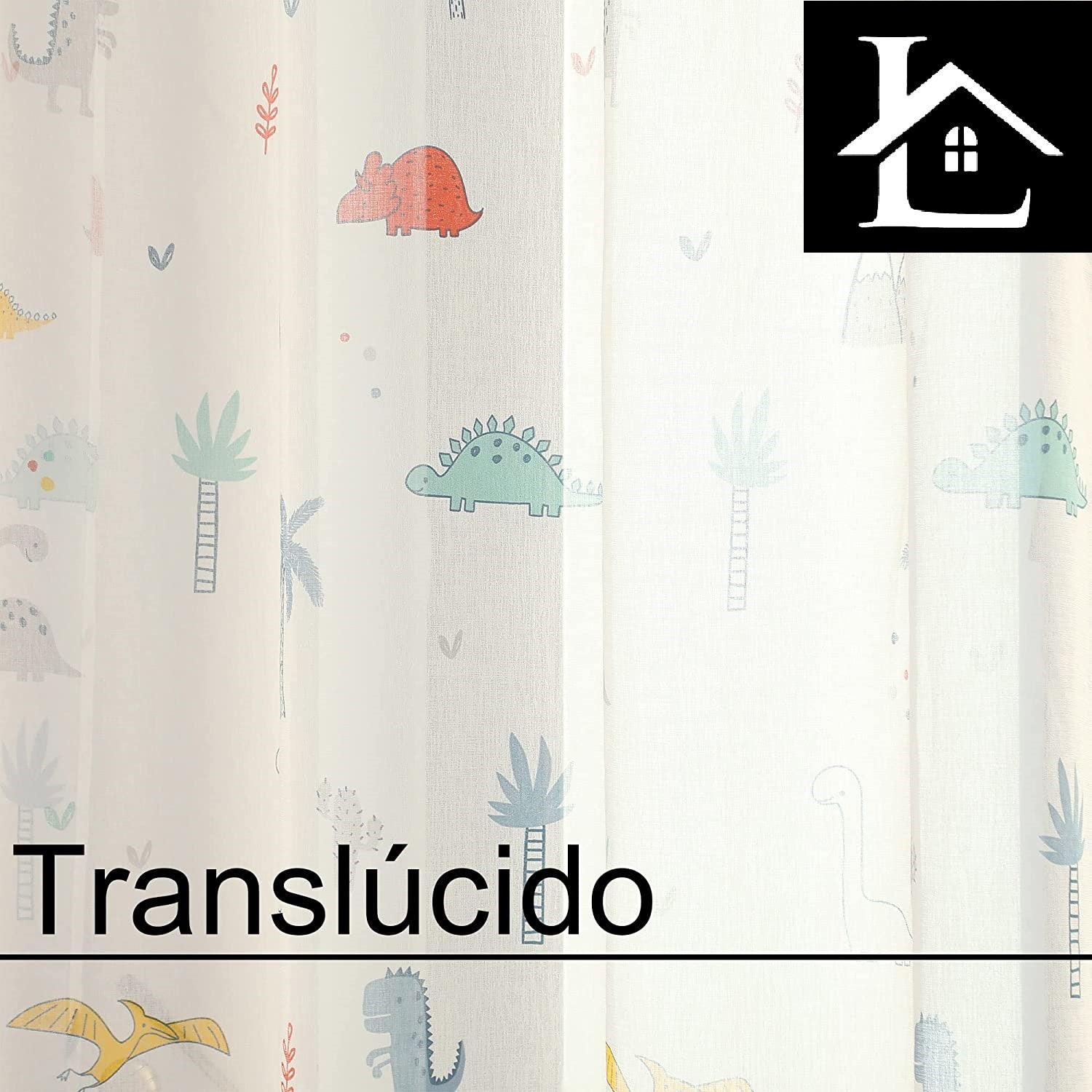 Cortinas Infantiles Niño Translucido Dos Paneles de 140x260cm- Cortinas Juveniles Animales para Habitación Sala de Estar 2 Piezas Patrón de Dinosaurio