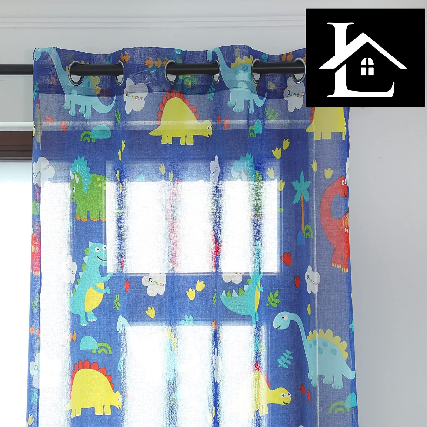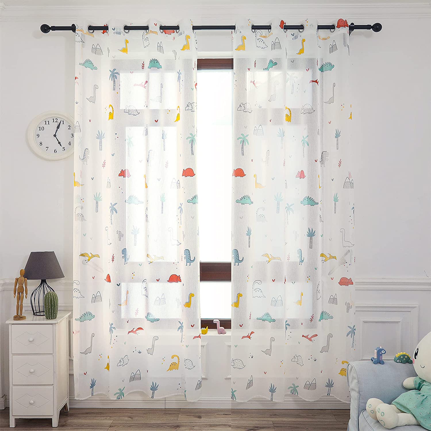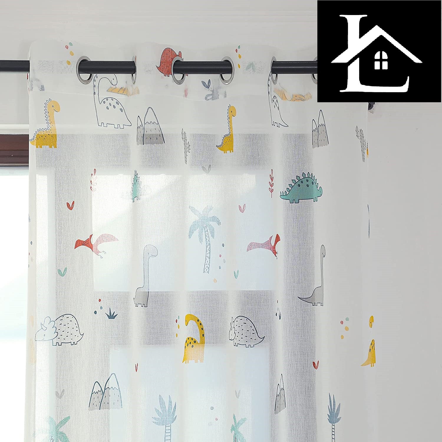Cortinas Infantiles Niño Translucido Dos Paneles de 140x260cm- Cortinas Juveniles Animales para Habitación Sala de Estar 2 Piezas Patrón de Dinosaurio