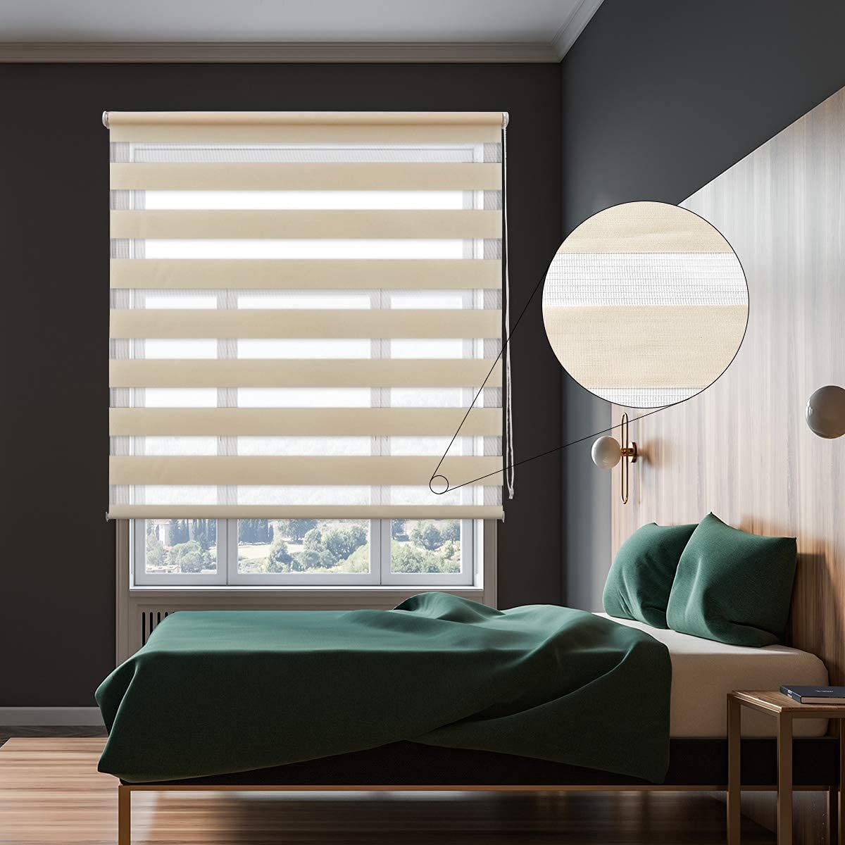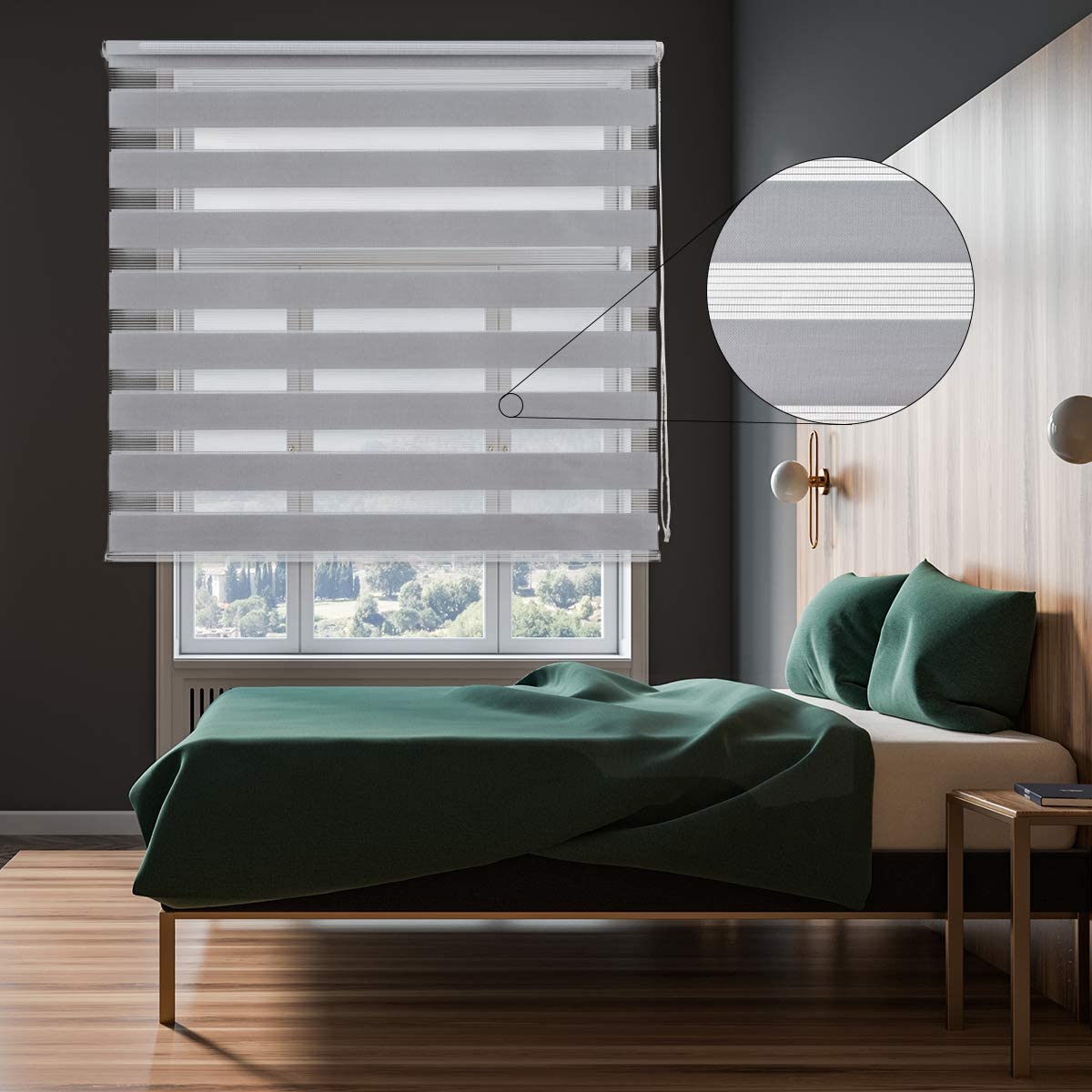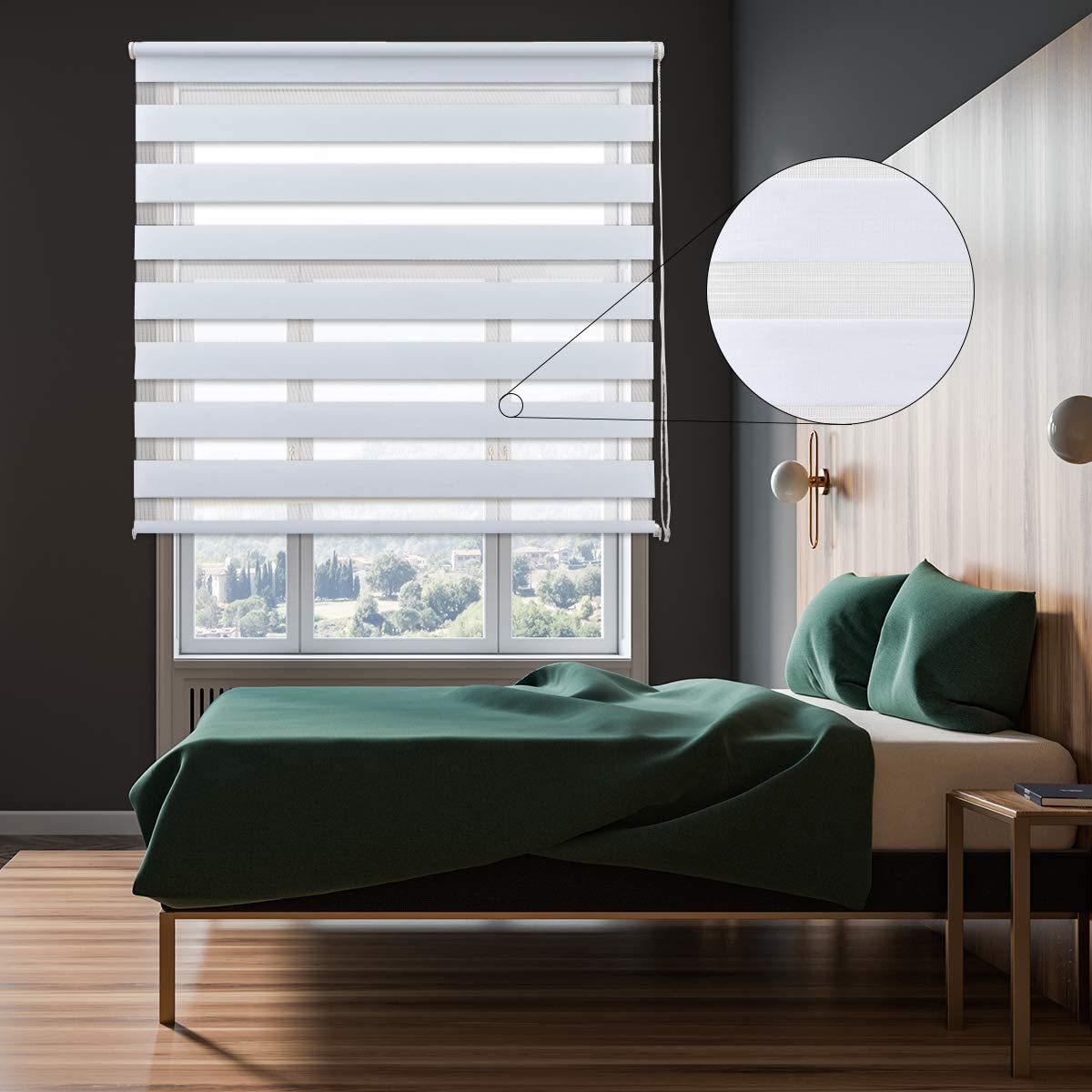 Estor Enrollable de Doble Capa Noche y Día (Blanco, 140x180cm)