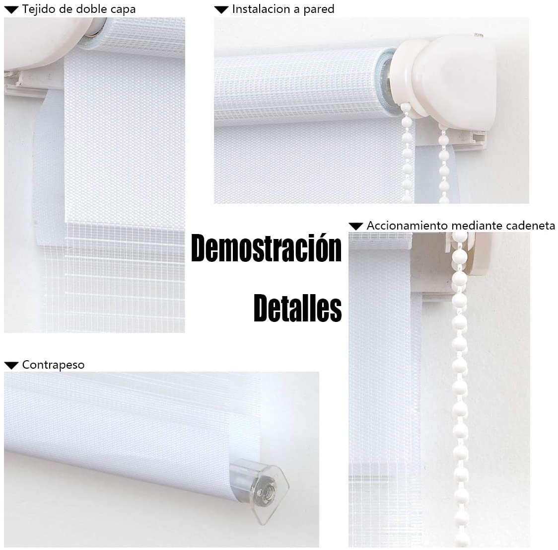 - MATERIAL. Hecho 100% Poliéster, resistentes a los rayos UV que ayudan a mejor tu privacidad y oscuridad. Además es fácil de limpiar, con solo un trapo humédo. Mecanismo y cadena de PVC en color blanco.