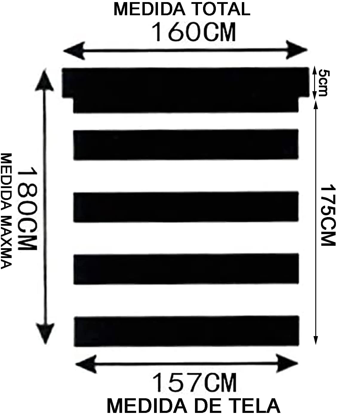 - NOTA: El ancho del producto, incluido soportes, es de 140 cm; el tejido mide 137 cm de ancho; el largo del producto abierto completamente más el mecanismo mide 180 cm; solo el tejido mide 175 cm