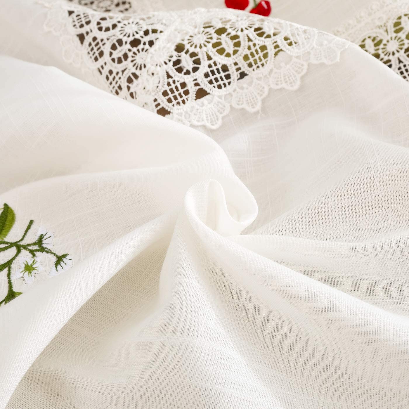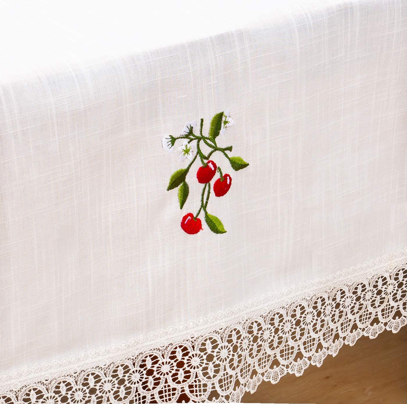 Manteles Redondo Algodon Lino - Mantel Decorativo con Diseño Bordado Cerezas para Mesa de Cocina - Comedor